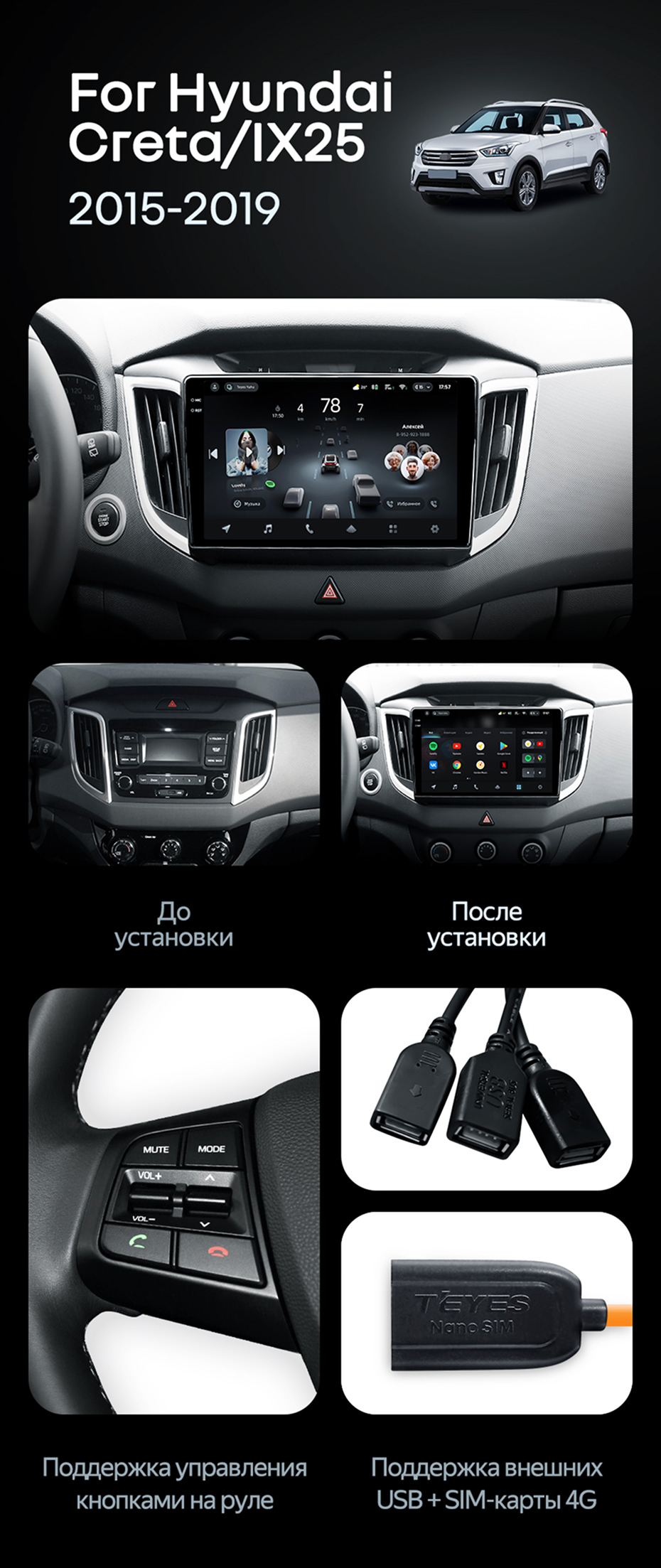 Штатная магнитола Teyes CC3 2K 4/32 Hyundai Creta 1 (2015-2019) с кнопками - купить всего за 46 000 руб. в интернет-магазине в Самаре Teyes.com.ru. ✓ Самый лучший выбор мультимедиа ✓ Лучшая замена штатному ГУ ✓ Тел. +7 (800) 775-31-74