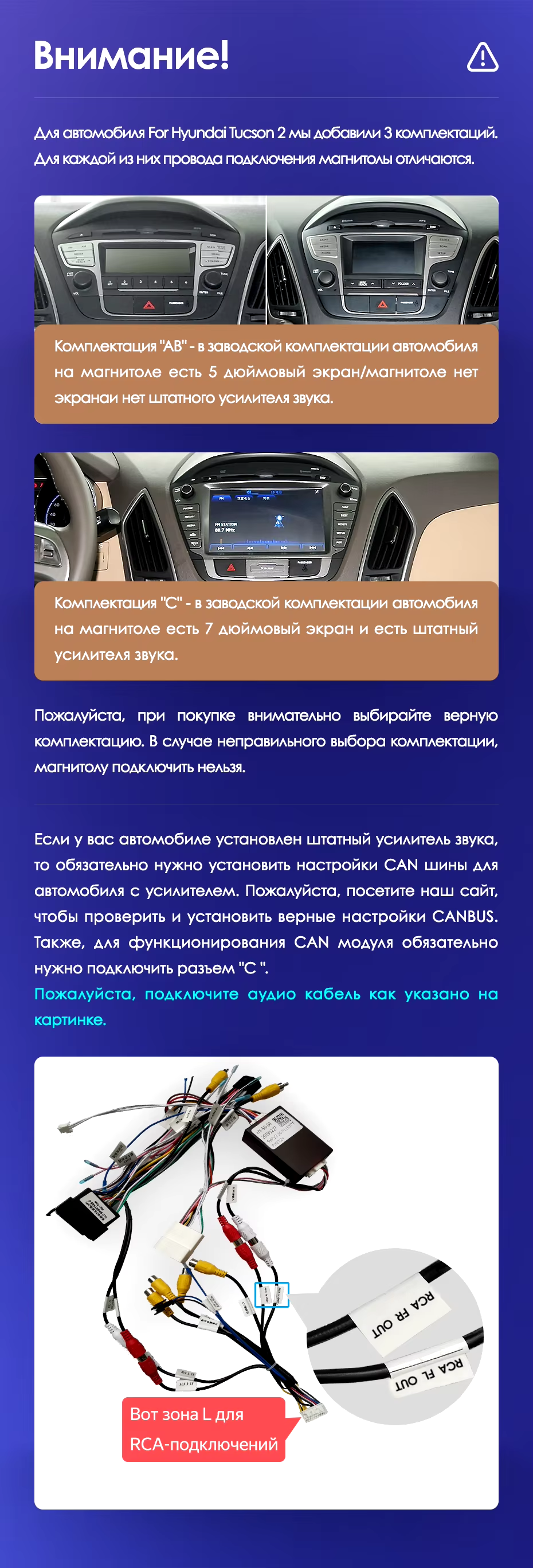 До покупки СС3 2к была магнитола сс2 Plus. Заменил минут за 15, авто Хендай iх35 2012 года. Все штекера подошли от старой cc2 plus, рамку поставил новую, шла в комплекте. Одна проблема, нет звука, от слова совсем. Поиграл установкой canbus, при полной громкости происходят громкие звуки, скрежет и все. Буду пробовать дальше. Надеюсь настрою. Разница между предыдущей версией и новой огромная, просто небо и земля.