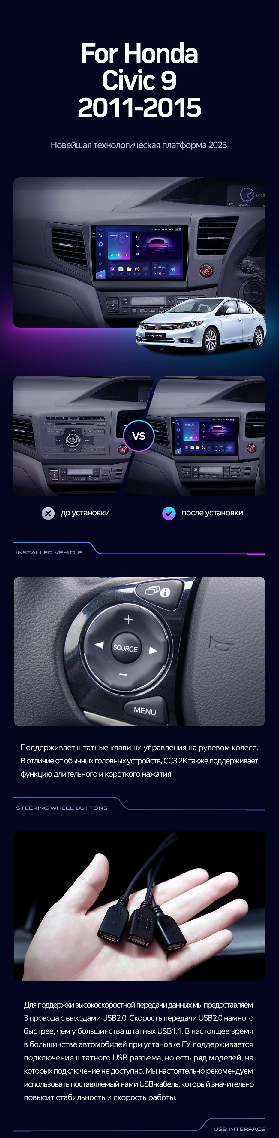 Штатная магнитола Teyes CC3 4/32 Honda Civic 9 FB FK FD (2011-2015) Правый руль - купить всего за 38 200 руб. в интернет-магазине в Самаре Teyes.com.ru. ✓ Самый лучший выбор мультимедиа ✓ Лучшая замена штатному ГУ ✓ Тел. +7 (800) 775-31-74