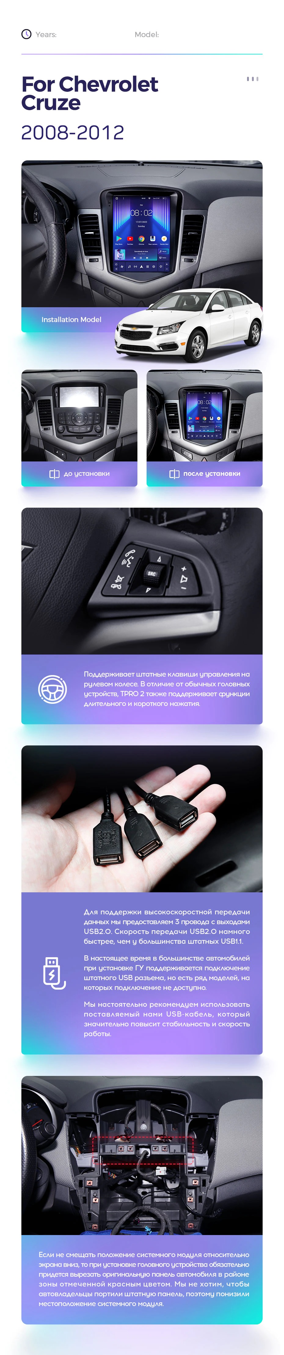 Эта штатная магнитола специально спроектирована и разработана для автомобилей, что гарантирует ее идеальную интеграцию с существующими элементами вашего авто. Вы получите возможность наслаждаться многообразием функций, включая воспроизведение музыки и видео, навигацию, Bluetooth-соединение, подключение задней камеры и многие другие.