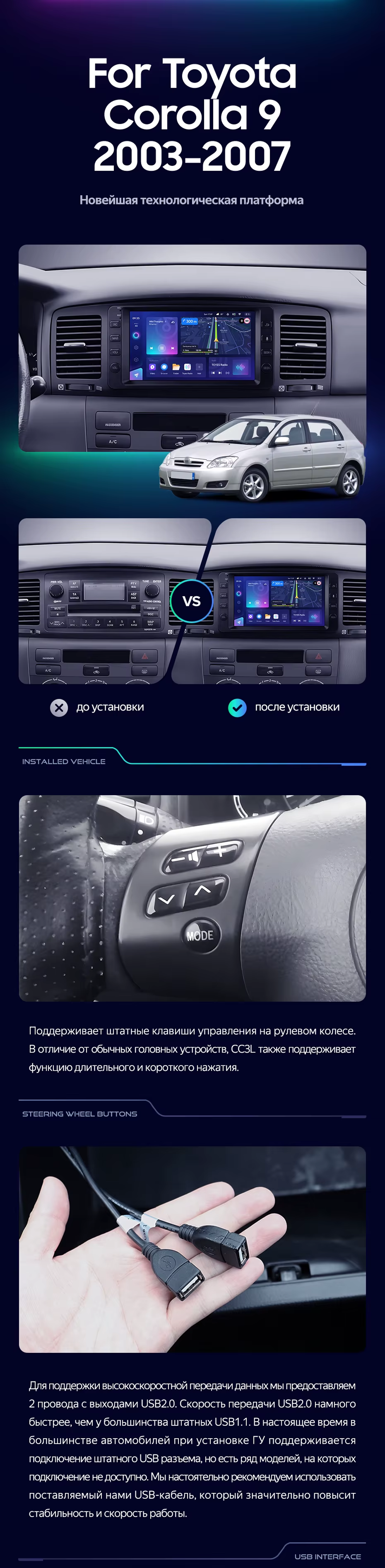 Штатная магнитола Teyes CC3L WiFi 2/32 Toyota Corolla 9 E120 E130 (2003-2007) 7" - купить всего за 22 450 руб. в интернет-магазине в Самаре Teyes.com.ru. ✓ Самый лучший выбор мультимедиа ✓ Лучшая замена штатному ГУ ✓ Тел. +7 (800) 775-31-74