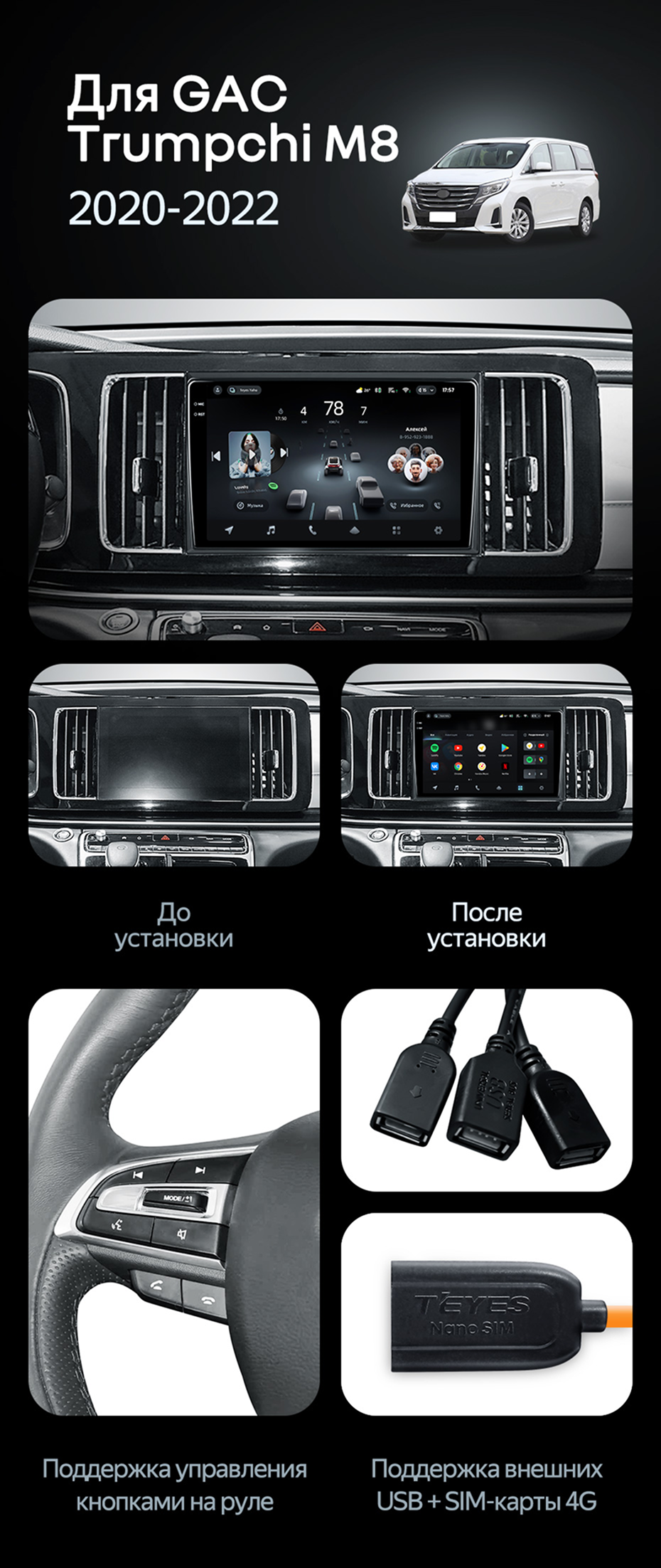 Штатная магнитола Teyes CC4 Pro 12/256 GAC Trumpchi M8 (2020-2022) - купить всего за 66 380 руб. в интернет-магазине в Самаре Teyes.com.ru. ✓ Самый лучший выбор мультимедиа ✓ Лучшая замена штатному ГУ ✓ Тел. +7 (800) 775-31-74
