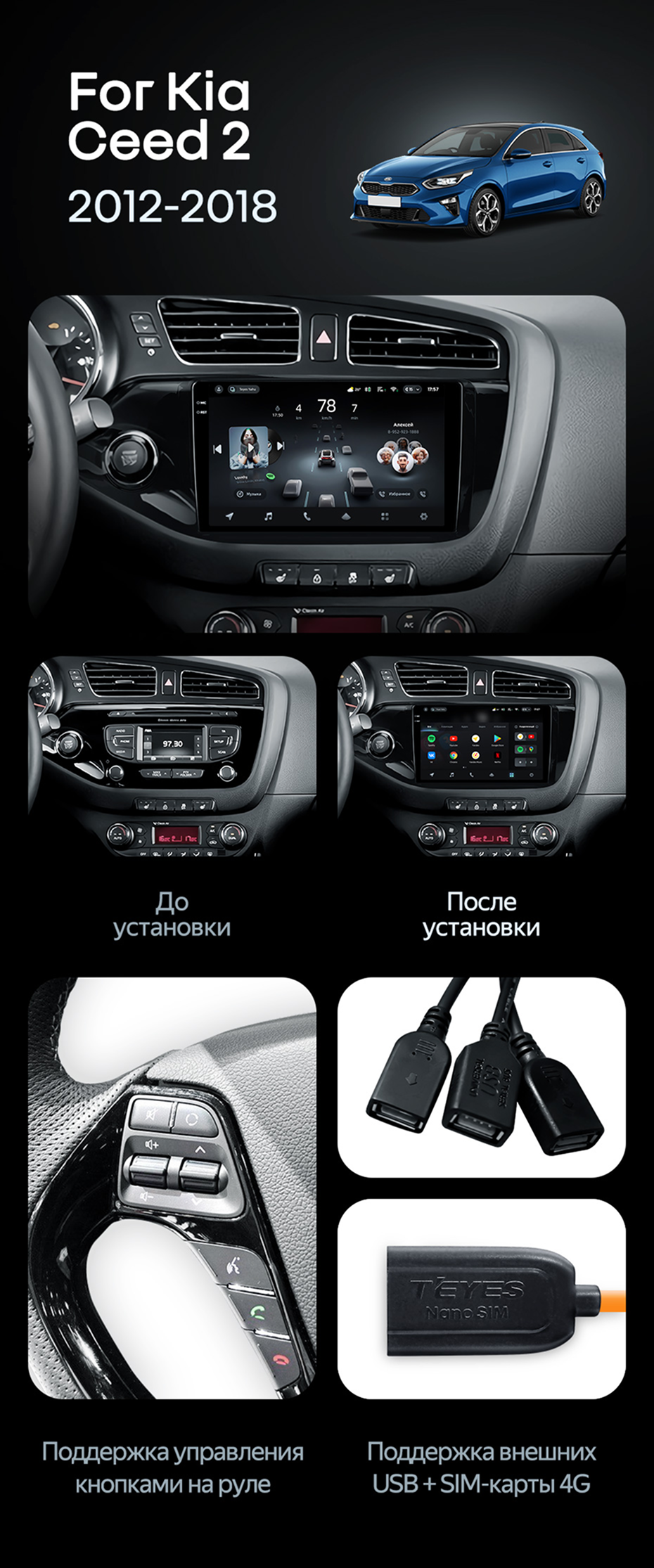 Штатная магнитола Teyes CC4 Pro 12/256 Kia Ceed 2 JD (2012-2018) - купить всего за 73 430 руб. в интернет-магазине в Самаре Teyes.com.ru. ✓ Самый лучший выбор мультимедиа ✓ Лучшая замена штатному ГУ ✓ Тел. +7 (800) 775-31-74