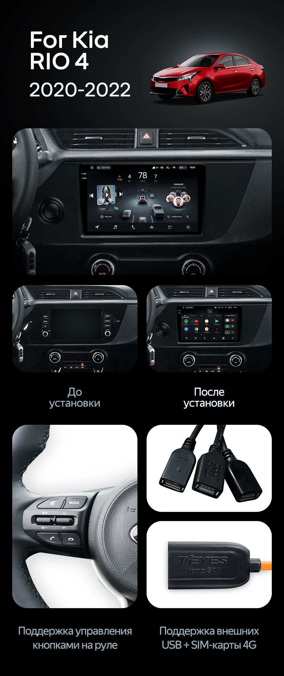 Штатная магнитола Teyes CC4 Pro 12/256 Kia Rio 4 IV FB (2020-2022) - купить всего за 73 830 руб. в интернет-магазине в Самаре Teyes.com.ru. ✓ Самый лучший выбор мультимедиа ✓ Лучшая замена штатному ГУ ✓ Тел. +7 (800) 775-31-74