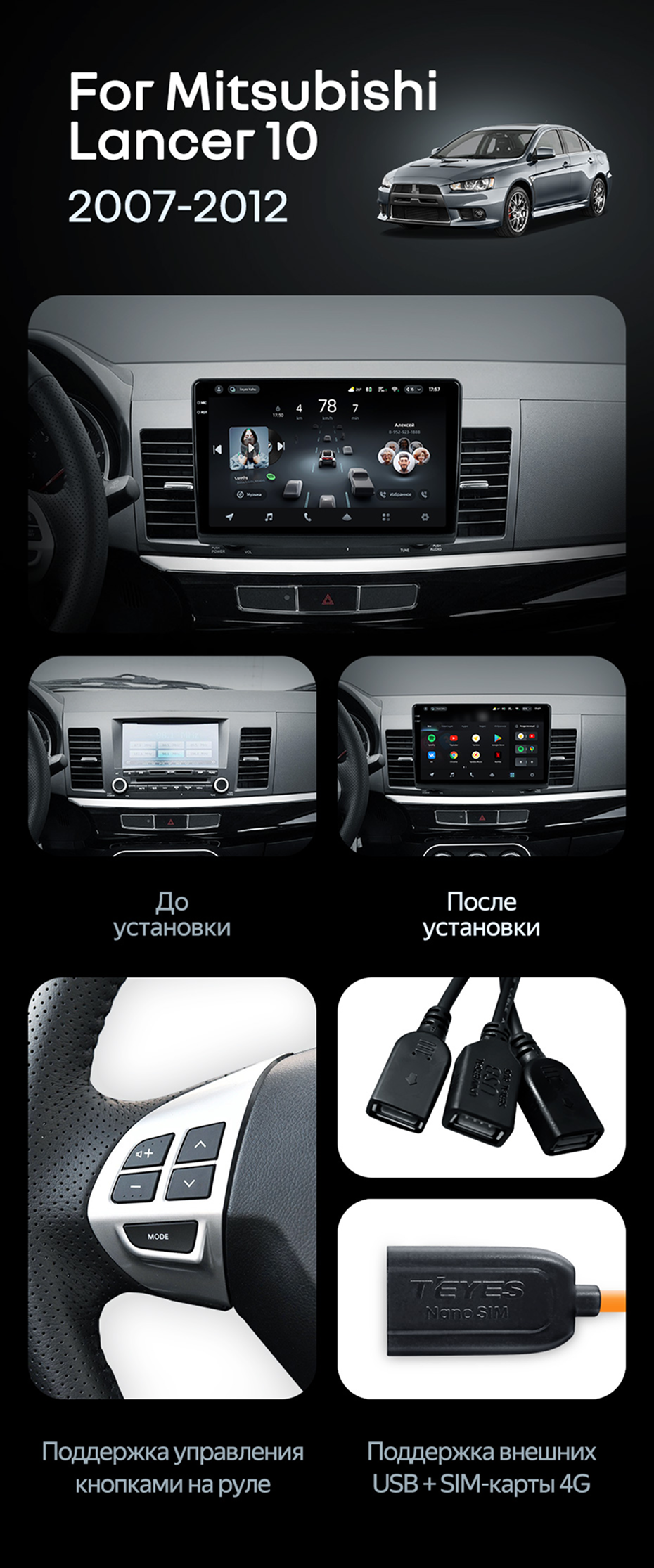 Штатная магнитола Teyes CC4 Pro 12/256 Mitsubishi Lancer 10 CY (2007-2012) Тип-B - купить всего за 73 360 руб. в интернет-магазине в Самаре Teyes.com.ru. ✓ Самый лучший выбор мультимедиа ✓ Лучшая замена штатному ГУ ✓ Тел. +7 (800) 775-31-74