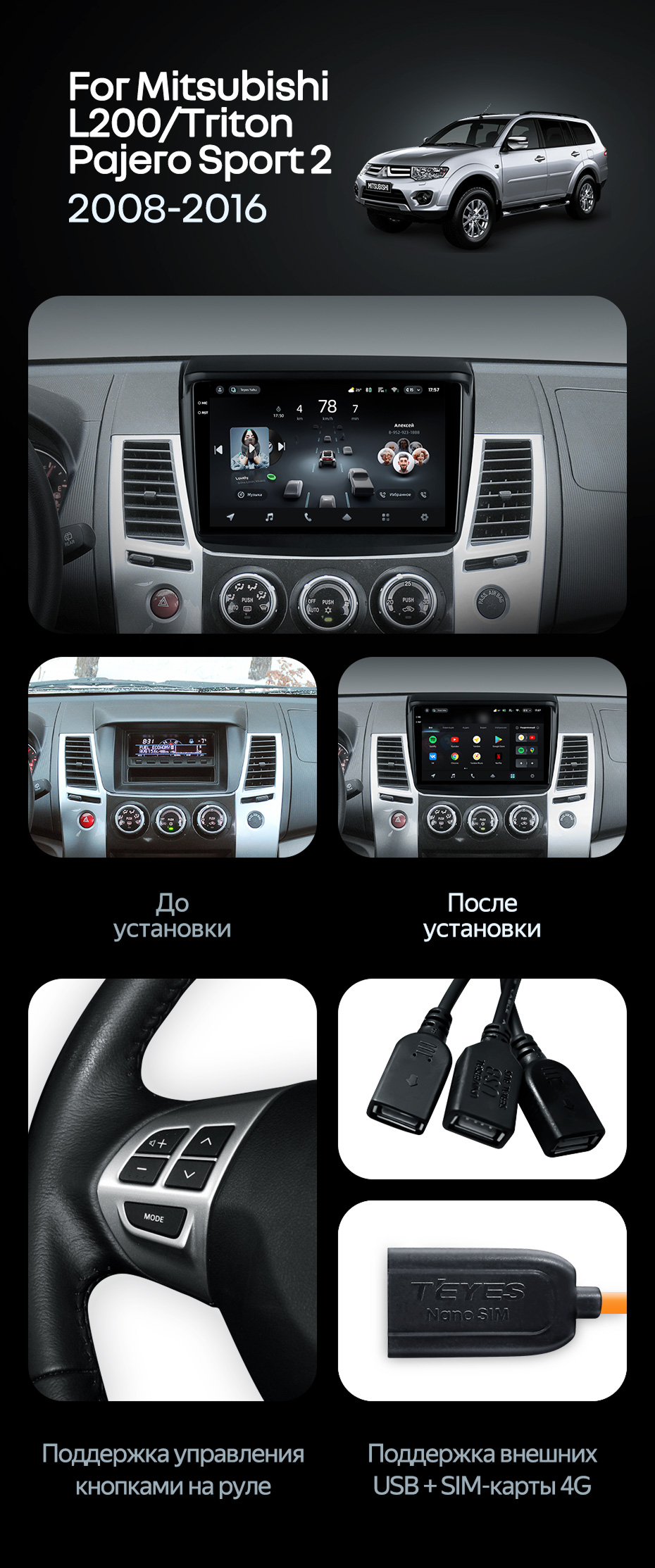 Штатная магнитола Teyes CC4 Pro 360 8/128 Mitsubishi Pajero Sport 2 (2008-2016) (13") - купить всего за 93 500 руб. в интернет-магазине в Самаре Teyes.com.ru. ✓ Самый лучший выбор мультимедиа ✓ Лучшая замена штатному ГУ ✓ Тел. +7 (800) 775-31-74