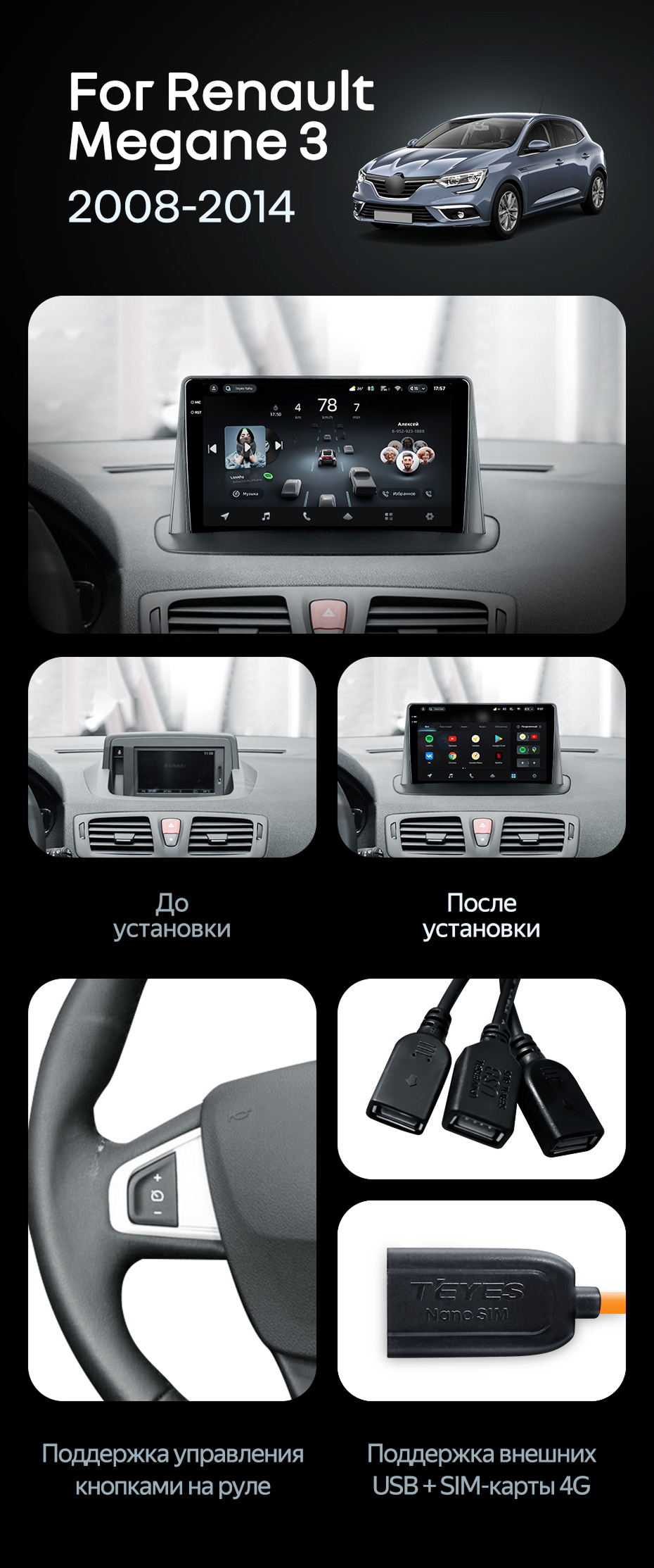 Штатная магнитола Teyes CC4 Pro 8/128 Renault Megane 3 (2008-2014) - купить всего за 65 440 руб. в интернет-магазине в Самаре Teyes.com.ru. ✓ Самый лучший выбор мультимедиа ✓ Лучшая замена штатному ГУ ✓ Тел. +7 (800) 775-31-74