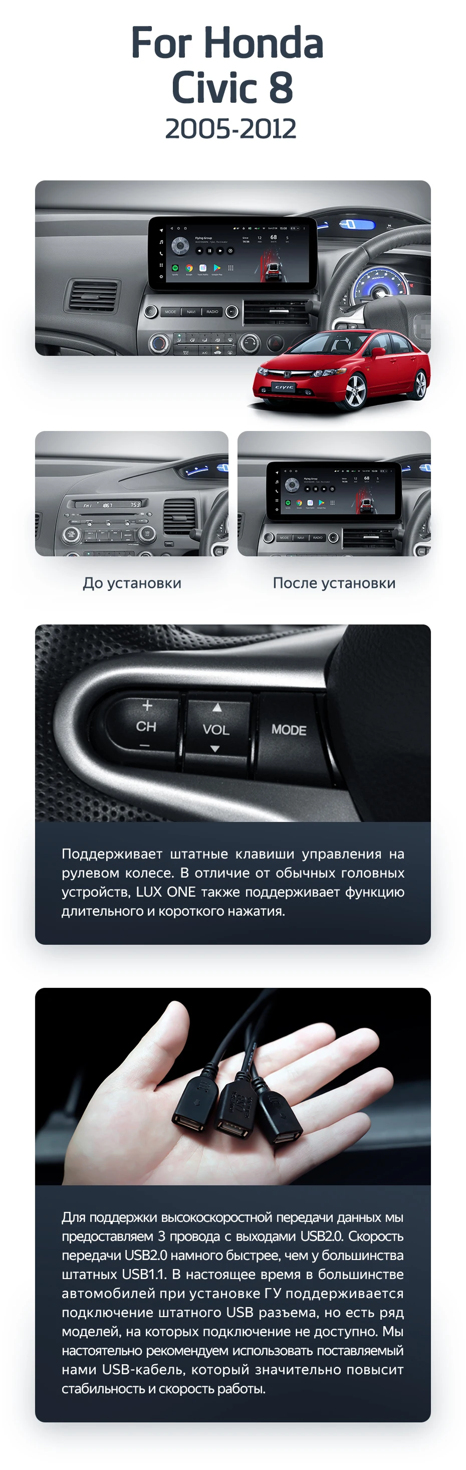Штатная магнитола Teyes LUX ONE 6/128 Honda Civic 8 FK FN FD (2005-2012) Правый руль - купить всего за 50 500 руб. в интернет-магазине в Самаре Teyes.com.ru. ✓ Самый лучший выбор мультимедиа ✓ Лучшая замена штатному ГУ ✓ Тел. +7 (800) 775-31-74