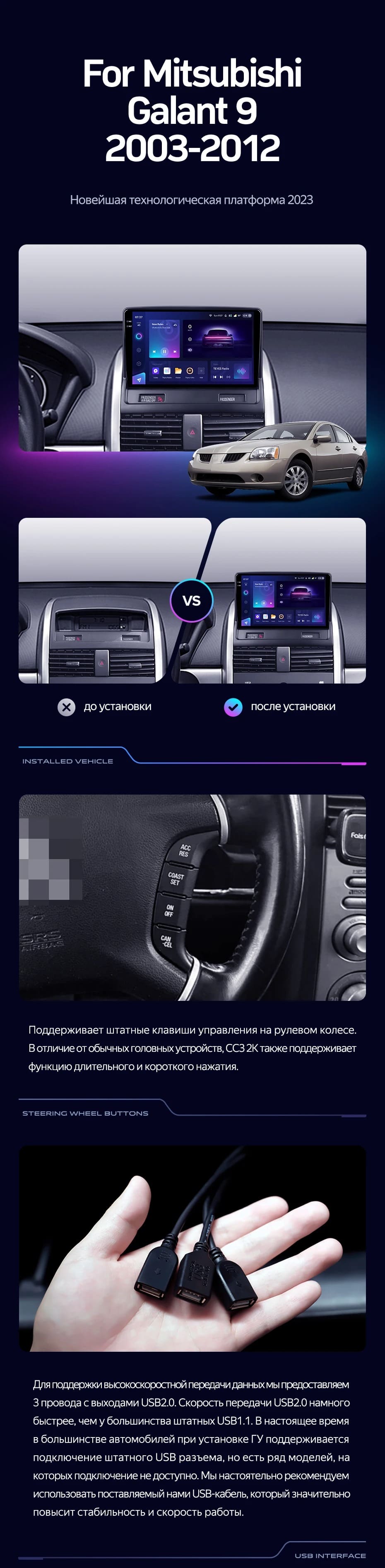 Полный комплект установки магнитолы Teyes с рамкой и проводкой можно выбрать в каталоге штатных магнитол Mitsubishi Galant 9 (2003-2012).