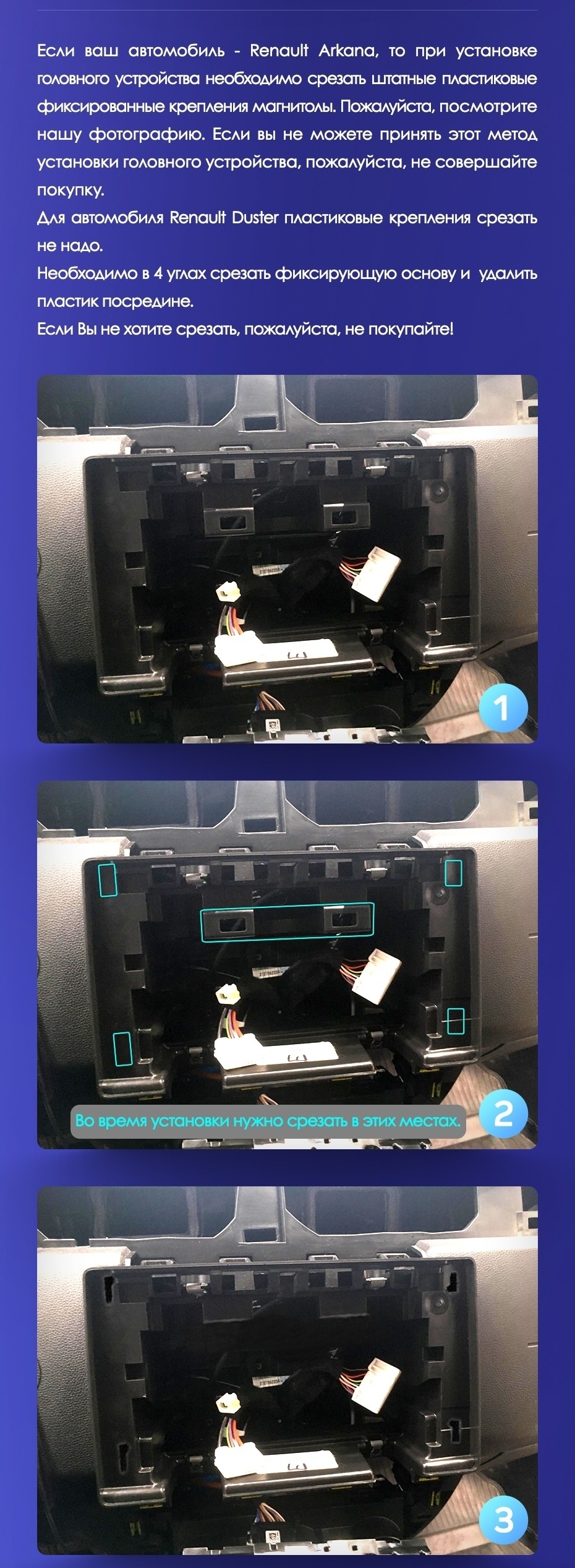Установочный комплект для Renault Arkana (2019-2021) включает переходную рамку и проводку.