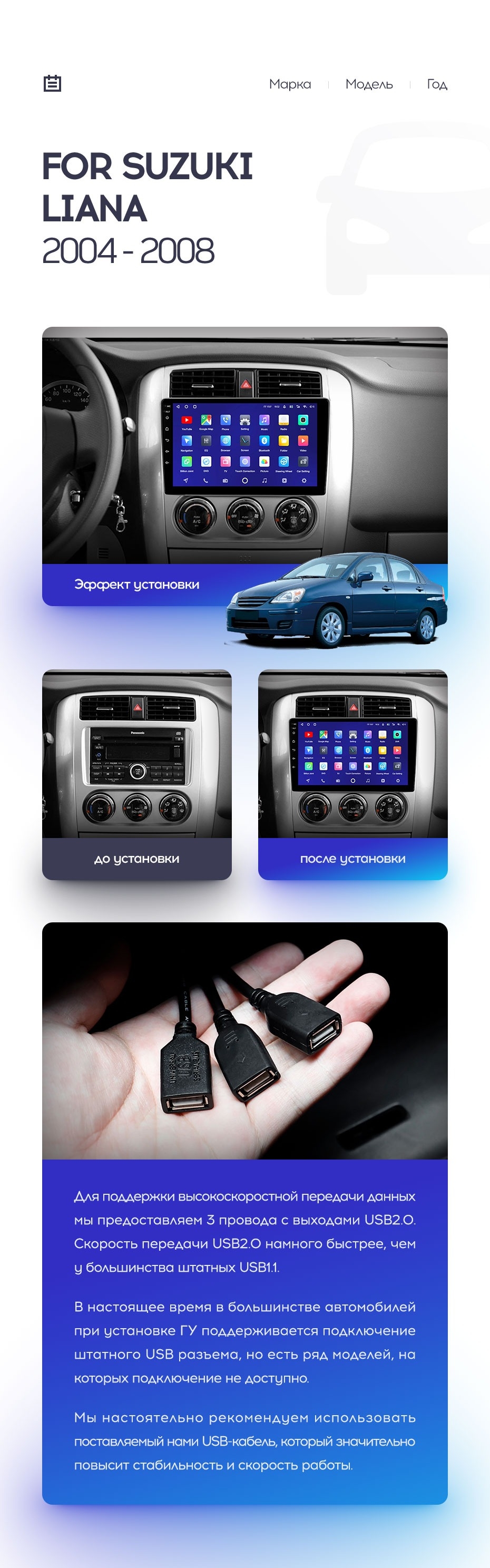 Полный комплект установки магнитолы Teyes с рамкой и проводкой можно выбрать в каталоге штатных магнитол Suzuki Liana 1 (2004-2008).