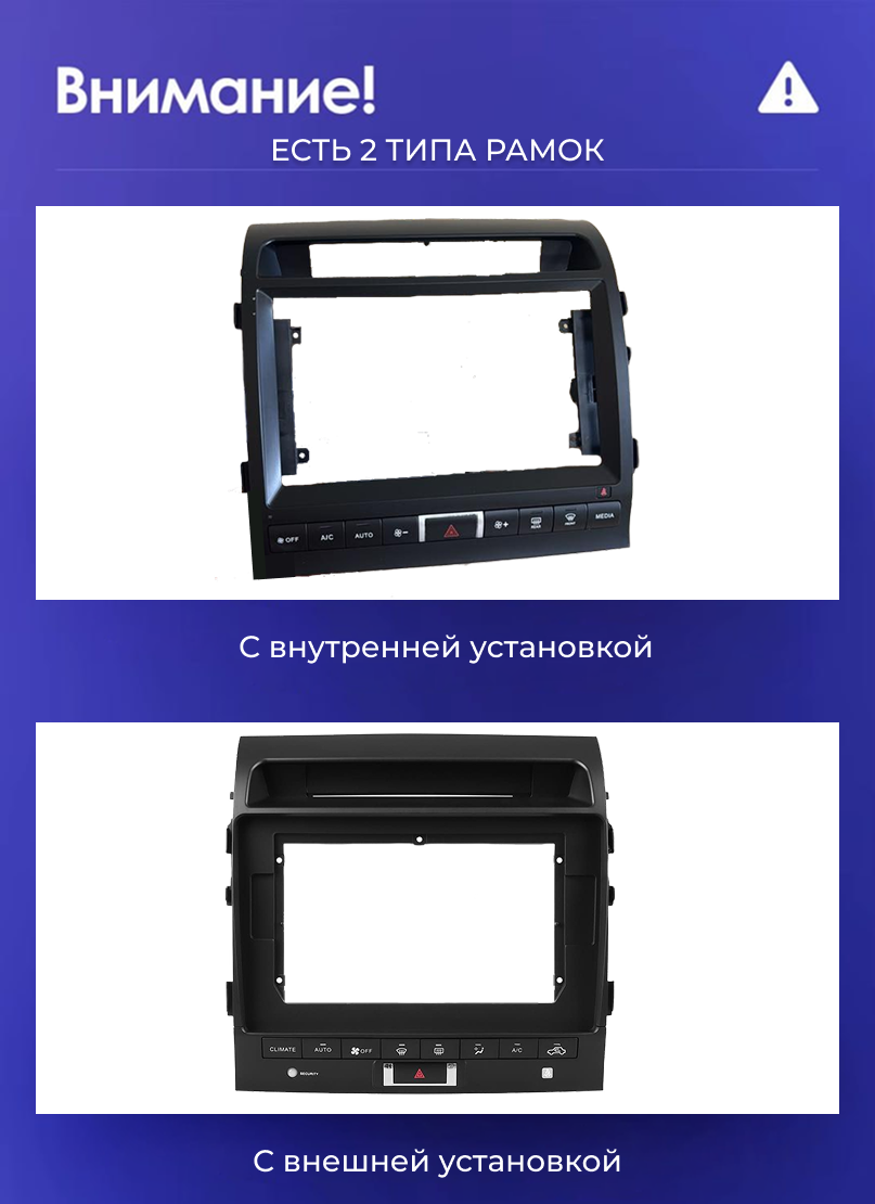 Установочный комплект для Toyota Land Cruiser 11 200 (2007-2015) включает переходную рамку и проводку.