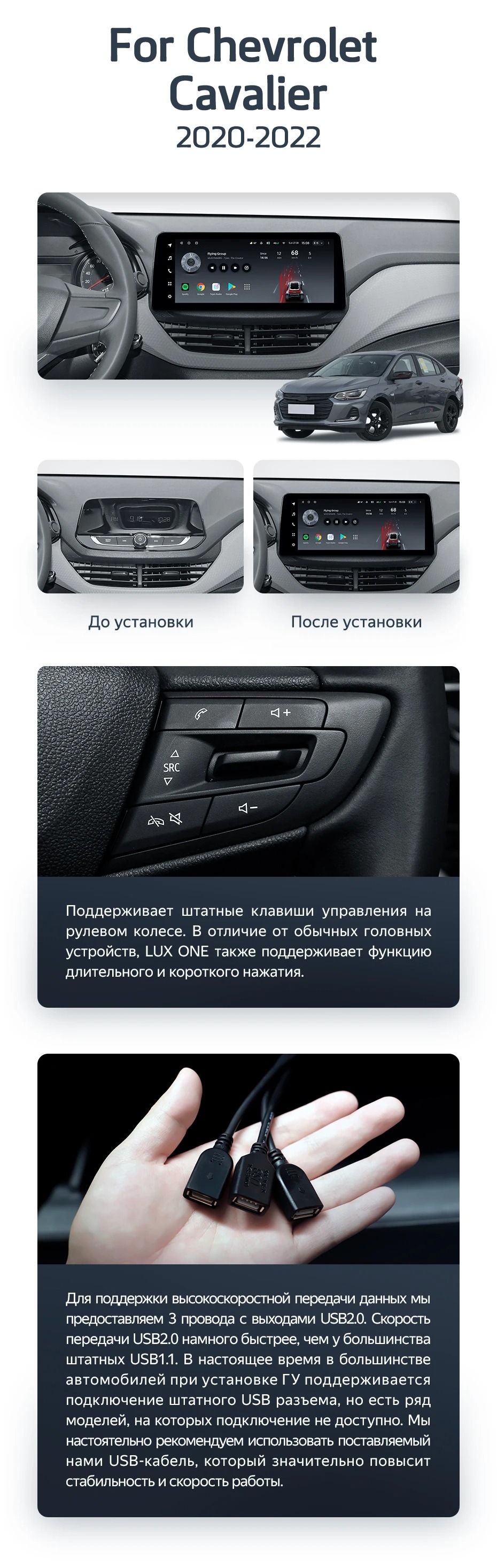 Установочный комплект для Chevrolet Cavalier (2020-2022) включает переходную рамку и проводку.
